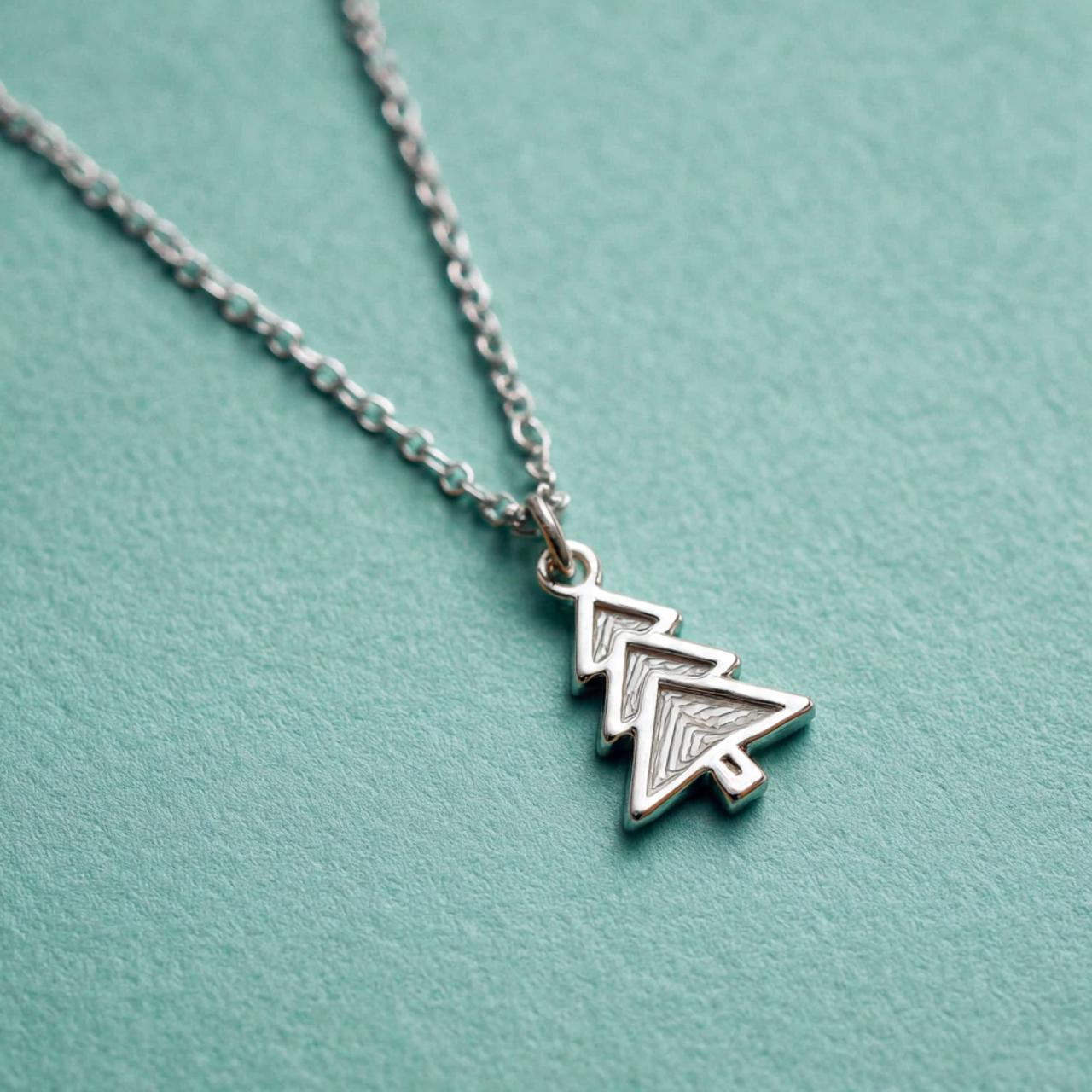 Kittum Sterling Silver Christmas Tree Moissanite Charm Necklace