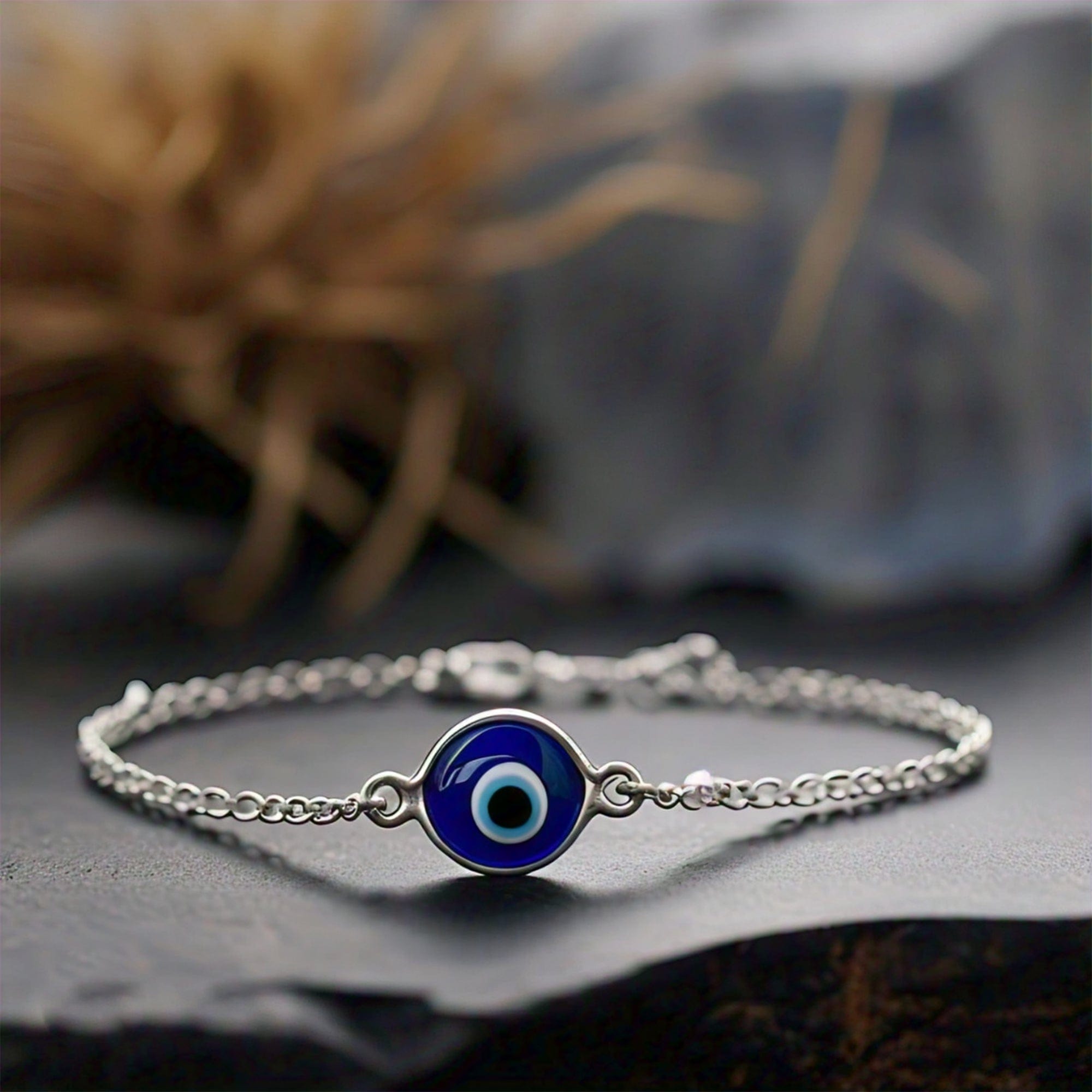 Freyja Blue Evil Eye Sterling Silver Bracelet Chain For Women & Man